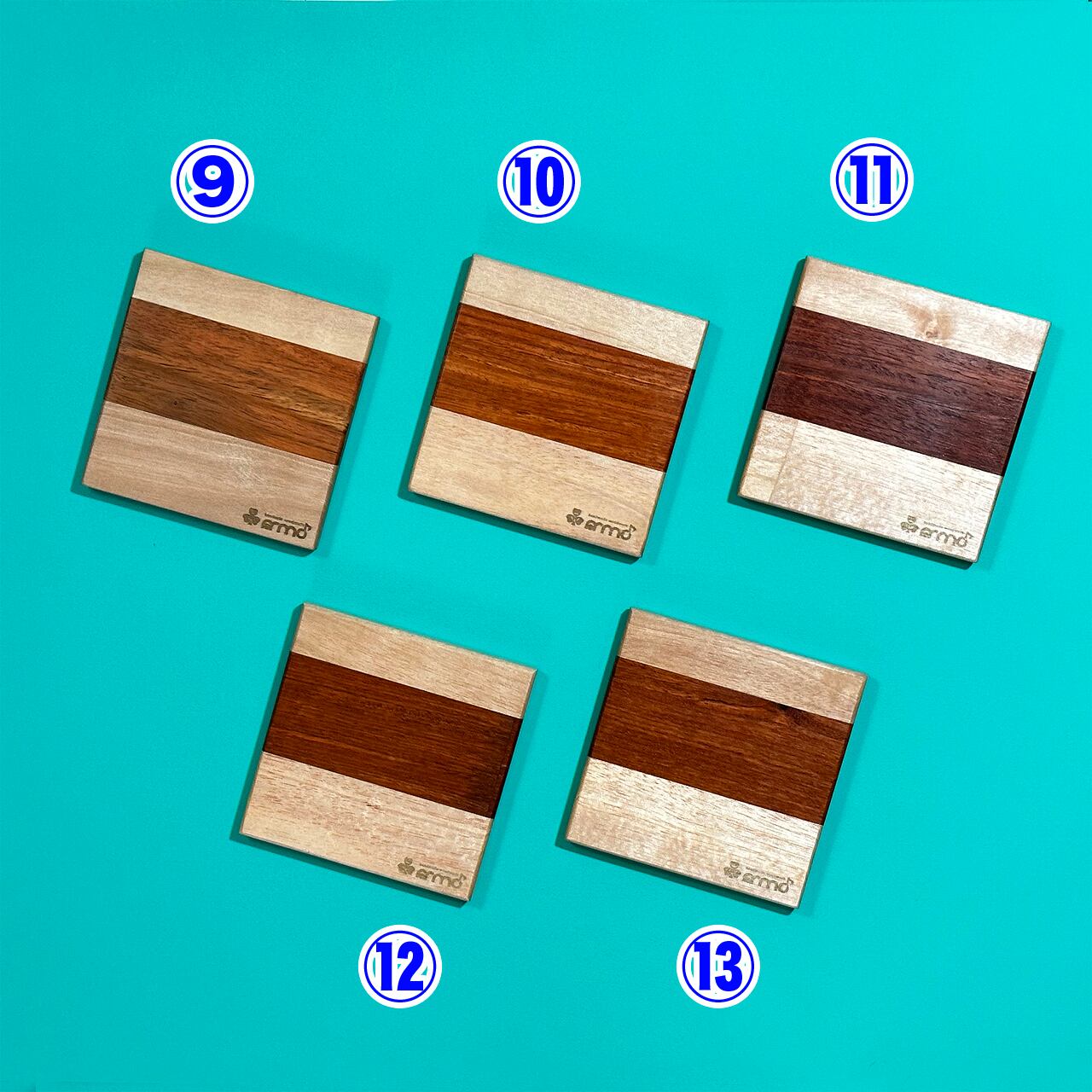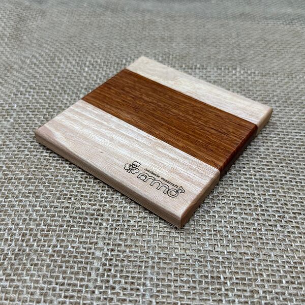 廃棄予定だった規格外品の無垢フローリング材を使った寄木タイプのコースターです。